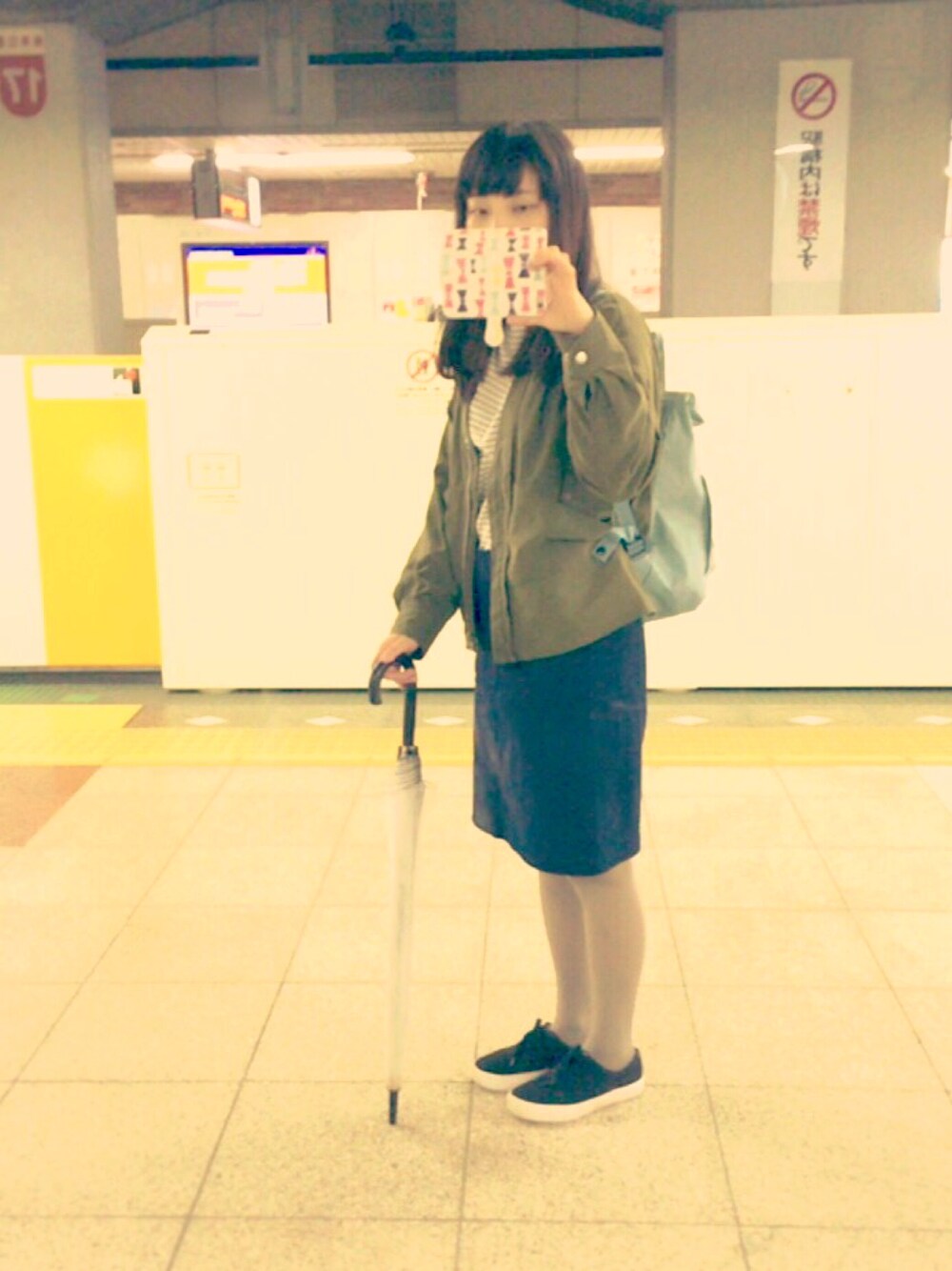 今日は雨 ユニクロのモックネックTちょうお気に入りです お仕事というよりは大学生ぽい