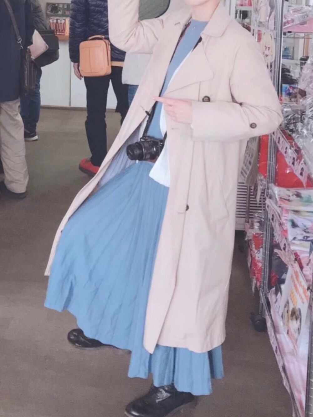 初春の旅行。雪も残っていたので、トレンチコートにユニクロのダウンをVネックにして着ました🧥ラグナムーンはセットアップでニット生地です。この時は旅行なのでカジュアルに着ていますが、付属のベルトでトップスをインすると、ドレスコードにもなり便利です😌現場猫です🐈