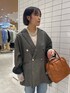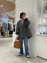 ジャケットは後ろのデザインがかわいい!! オーバーサイズなので、今回はすっきり見えするフレアデニムと合わせました👖 全体的に重くならないように、薄めのデニムをチョイスしています!