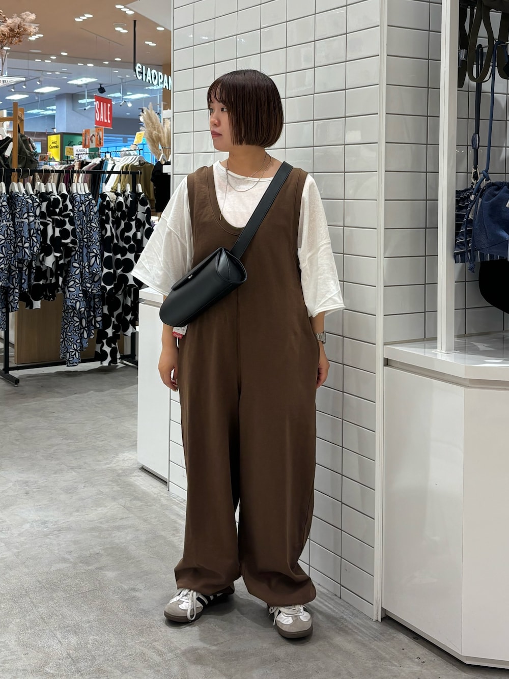 a s u k a(CIAOPANIC TYPY)のサロペット/オーバーオール「【willow】【新色追加】スラブ裏毛裾ドロストオールインワン」を使ったコーディネート