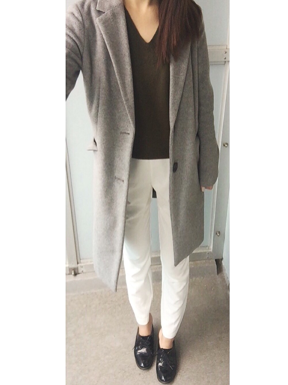 寒いので本日は去年購入したguのチェスターコート👕💓 最近カーキがお気に入りです。