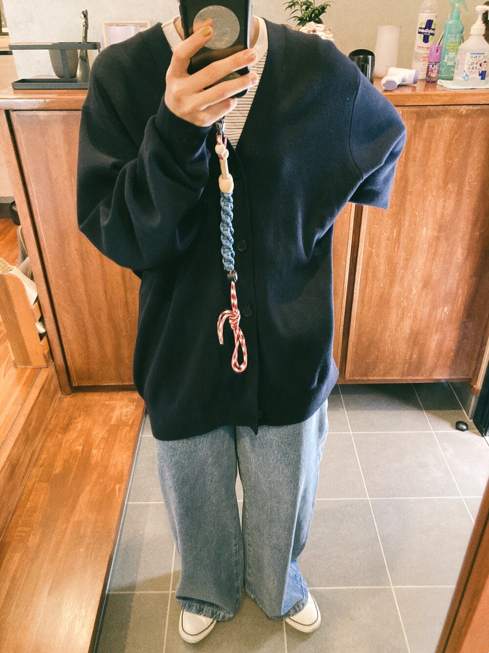 UNIQLOのカーディガン、メンズなのでもともと大きめですが、ボタンとめてトップスとしても着れるようにXLサイズを購入しました◎ 最近の気分はネイビーや黒を明るめのボトムスと合わせるのが好き☺️