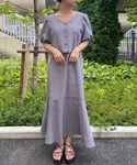 マーメイドキャミワンピースとグリーンのシャツのトレンドコーデ💚🫶