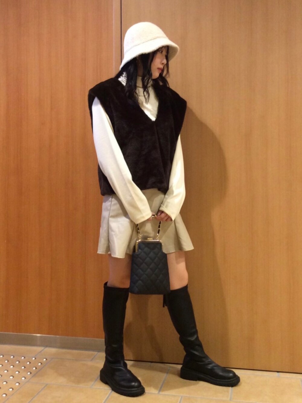 ブラウンとアイボリーの甘めカジュアルコーデ🤎🤍