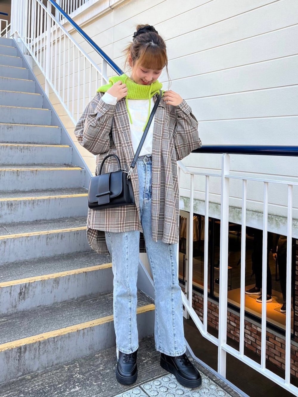 グリーンのバラクラバがかわいいカジュアル冬コーデ💚🎄