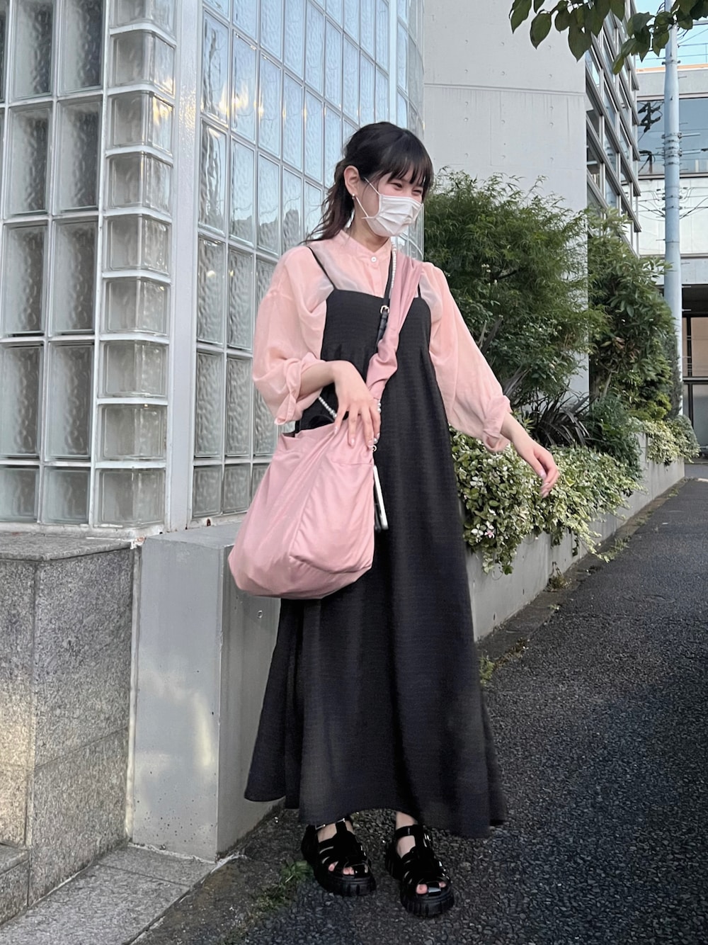 ピンクがかわいいキャミワンピースコーデ💓