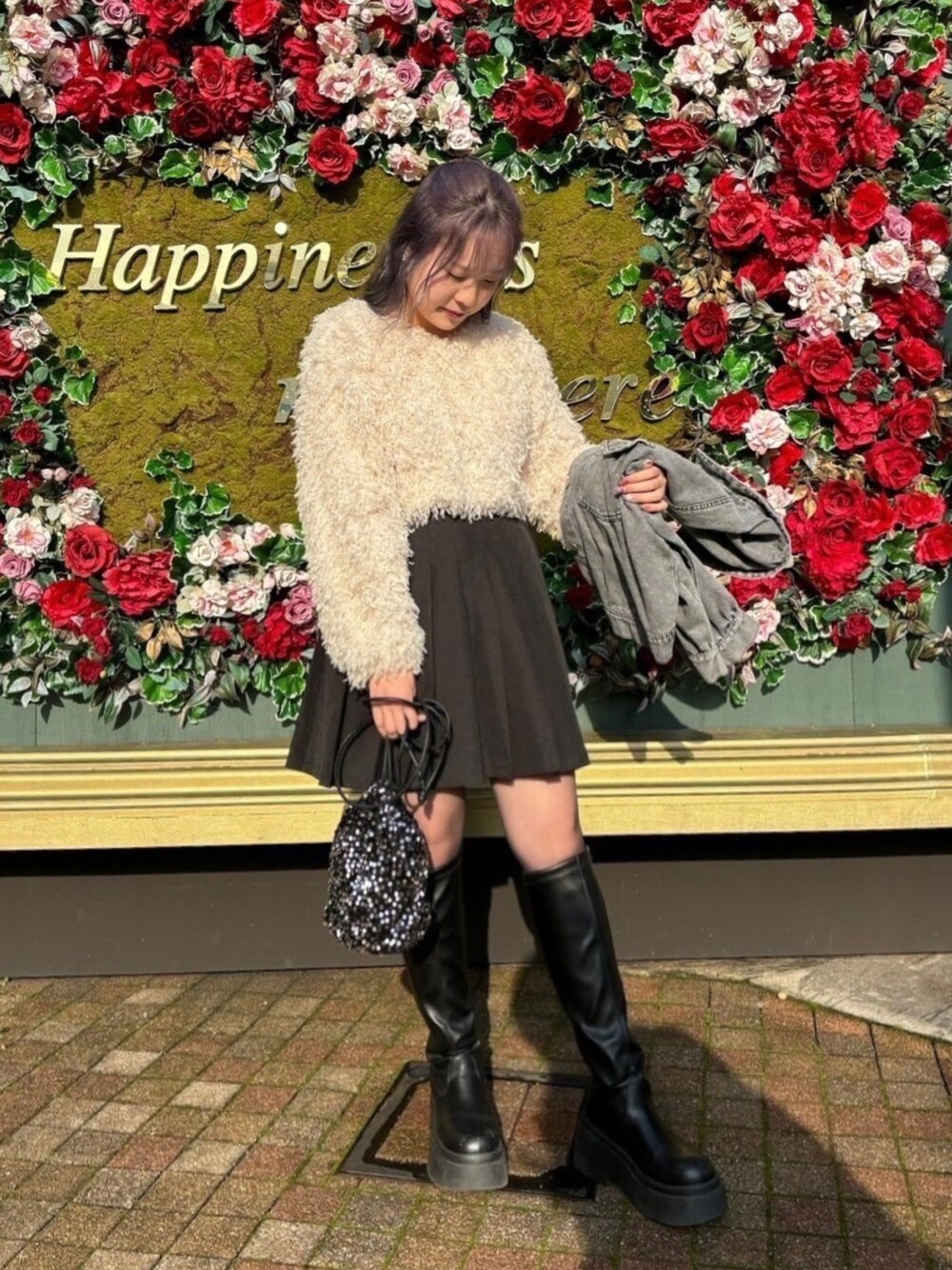 ふわふわのシャギーニットとミニスカ合わせが女の子らしい綺麗めモノトーンコーデ🥀 instagram→@asknowasplus