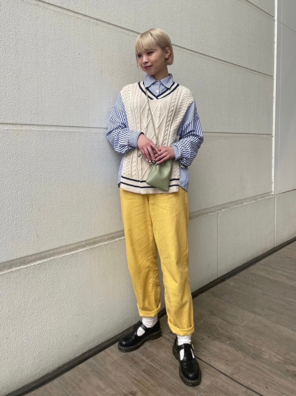春っぽいイエローが映える⭐️ベスト×シャツで大人カジュアルコーデ instagram→@asknowasplus