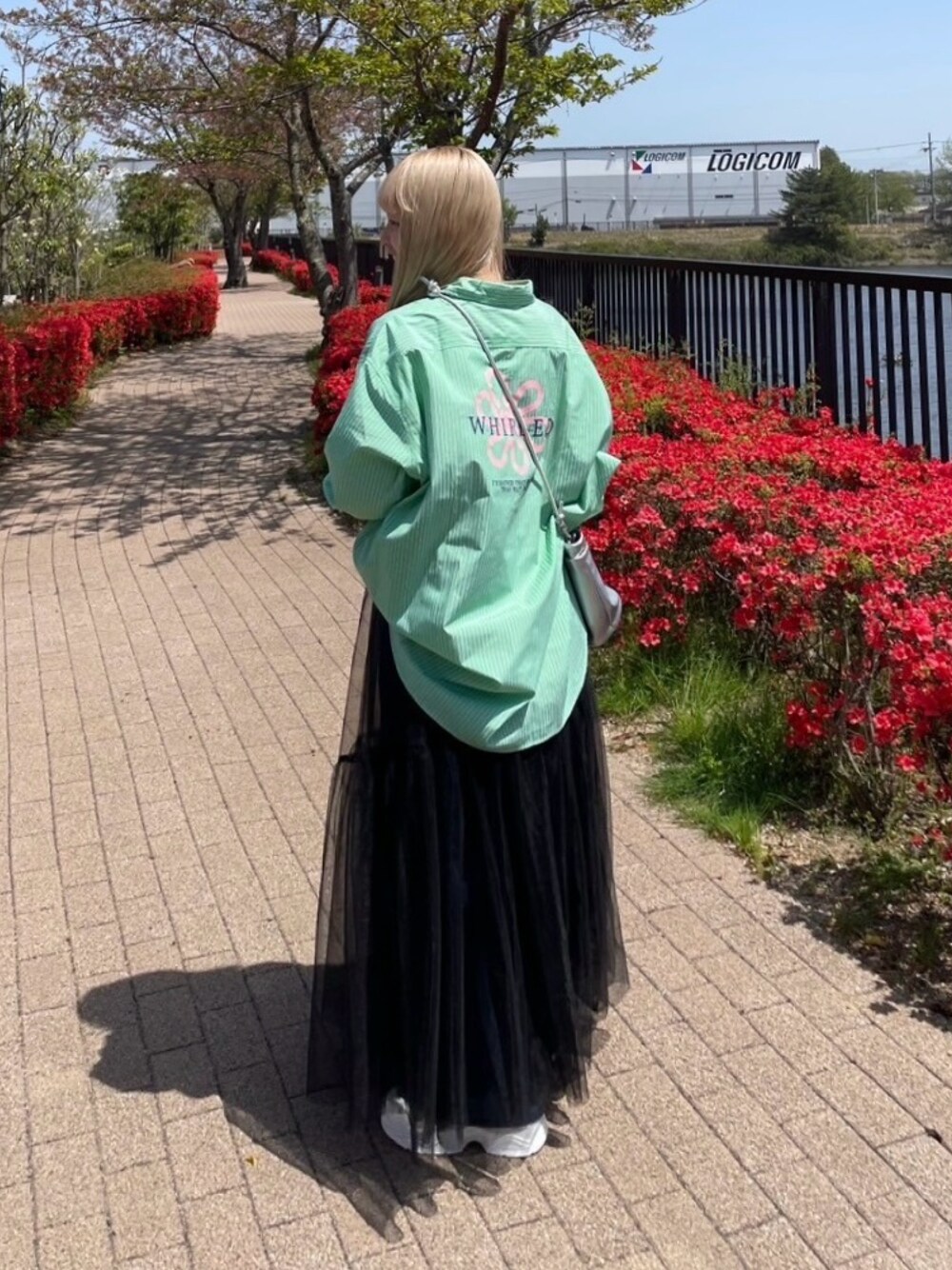 ポップなお花のバックプリントが可愛いビッグシャツコーデ🌱 Instagram→@asknowasplus