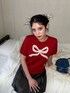 着映える赤の大きなリボンデザインニットで大人なガーリーコーデ🧶 model:松田るかさん instagram:@imrukam