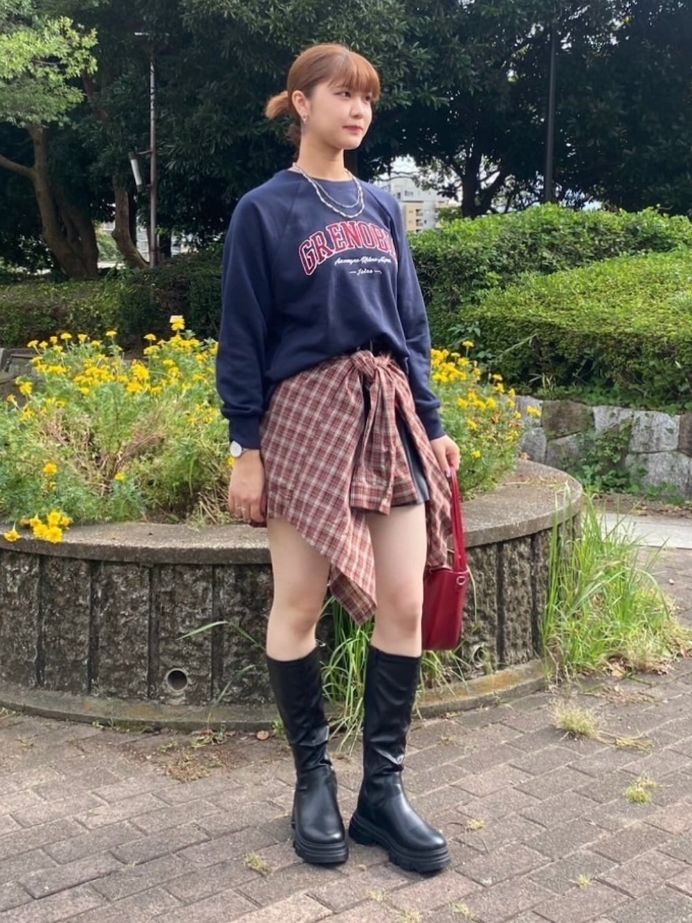シャツを巻いて、トレンドのラップ風スカートに♪秋のストリートコーデ🍂 instagram→asknowasplus