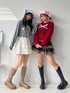 リボンモチーフとフリルスカートが今っぽいおそろいガーリーコーデ🎀 model→もふもふもーさん(左:ととちゃん 右:みみちゃん) instagram→@mofmofmo_tm