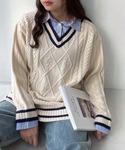 AS KNOW AS plus/アズノゥアズプラス(AS KNOW AS plus)のニット/セーター「●チルデンニット 重ね着風 ドッキングプルオーバー」を使ったコーディネート