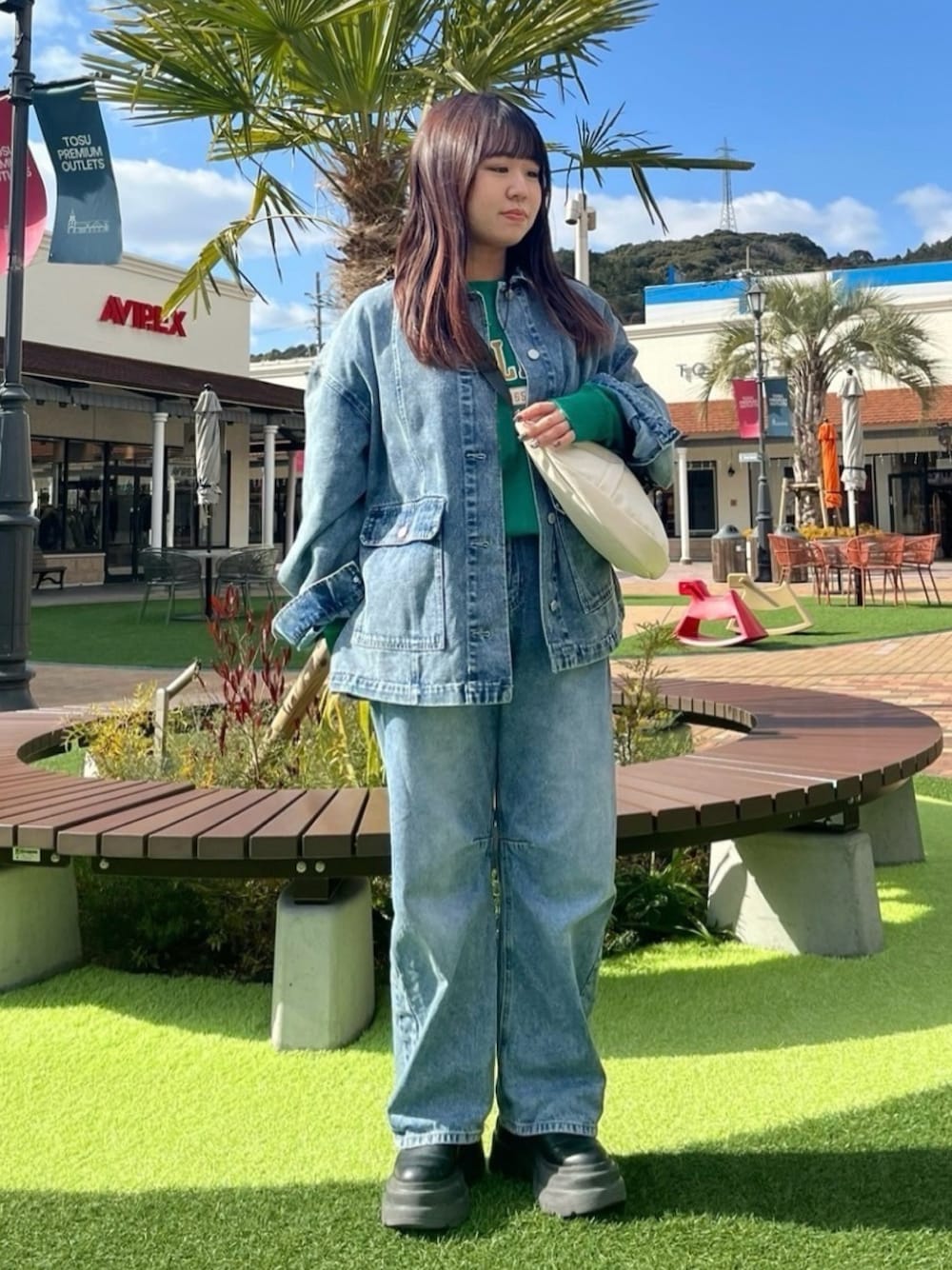 春はやっぱりセットアップ☘️ デニムにグリーンのスウェットが映えるカジュアルコーデ✨ instagram→@asknowasplus