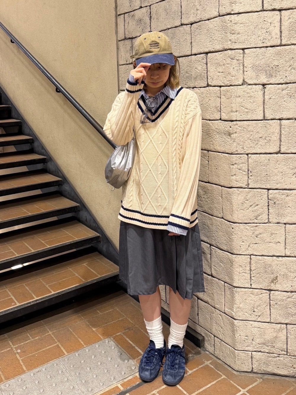 アイボリーのケーブルニットとミディスカートを合わせた、大人カジュアルコーデ☘️ instagram→@asknowasplus