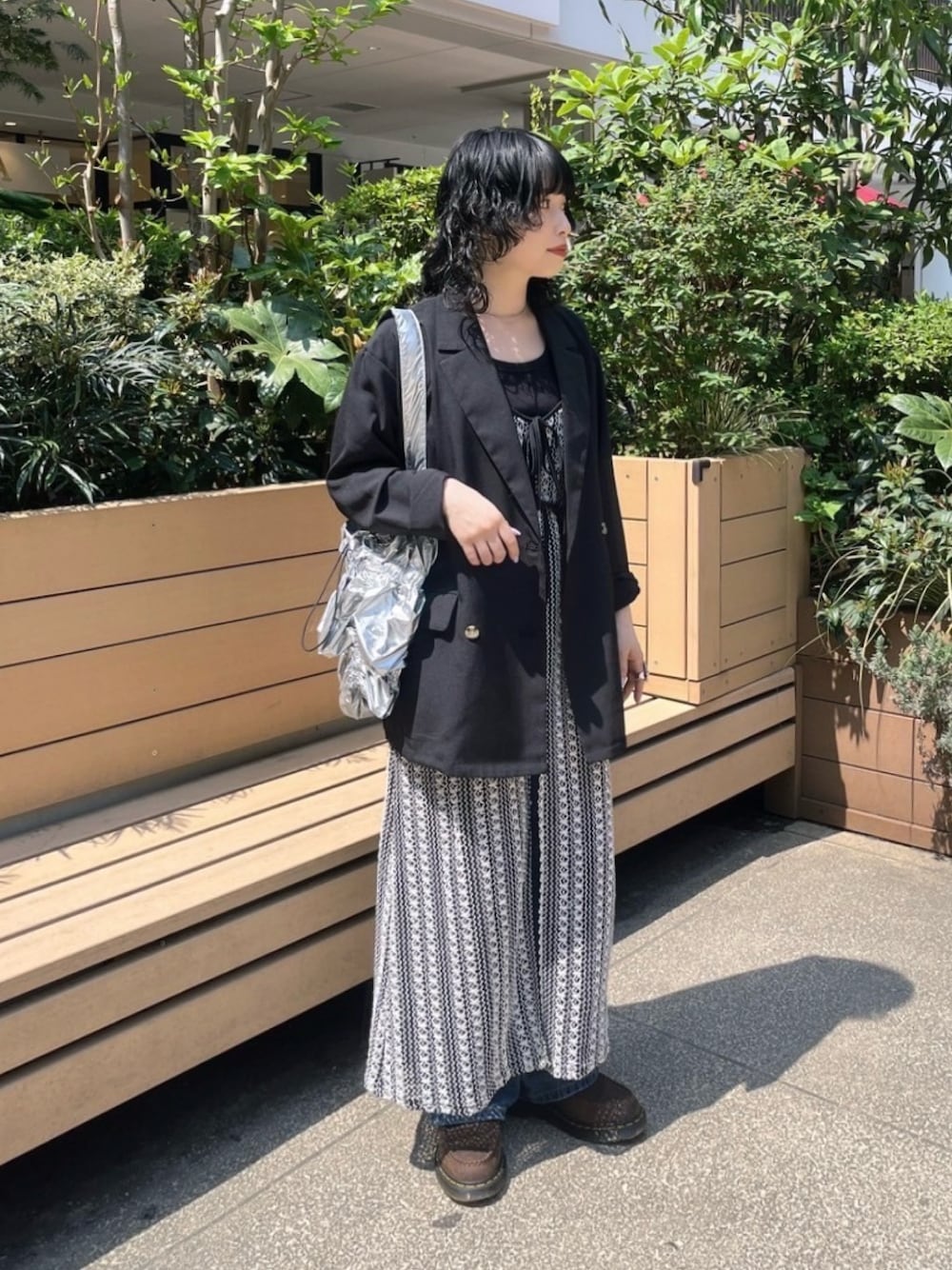 メッシュのキャミワンピと薄手テーラードジャケットを合わせたこなれ感のあるカジュアルコーデ✨ instagram→@asknowasplus