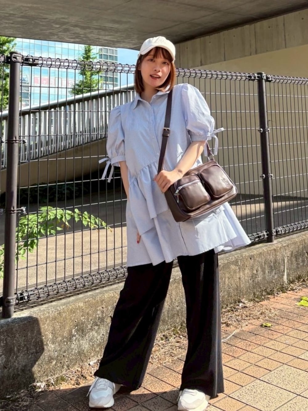 袖リボンとボリューム袖が可愛いチュニックを、あえてカジュアルな小物とパンツで合わせたカジュアルコーデ☆*:.。. Instagram→@asknowasplus