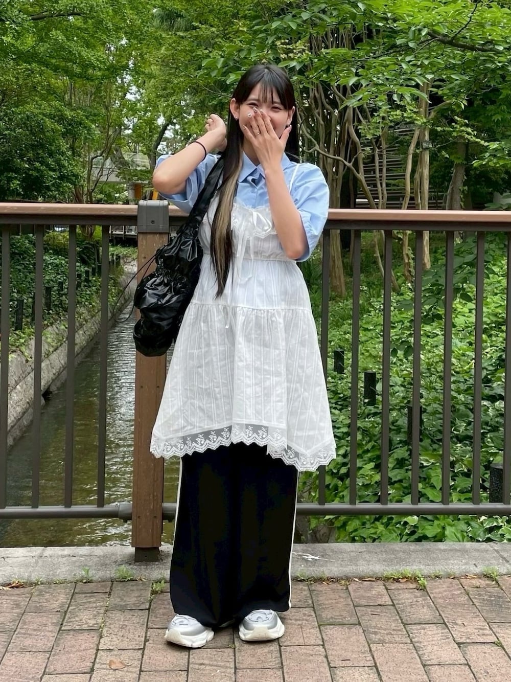 トレンドのコットンキャミチュニックをスポーティなラインパンツと合わせた韓国ガーリーコーデ🇰🇷 instagram→@asknowasplus