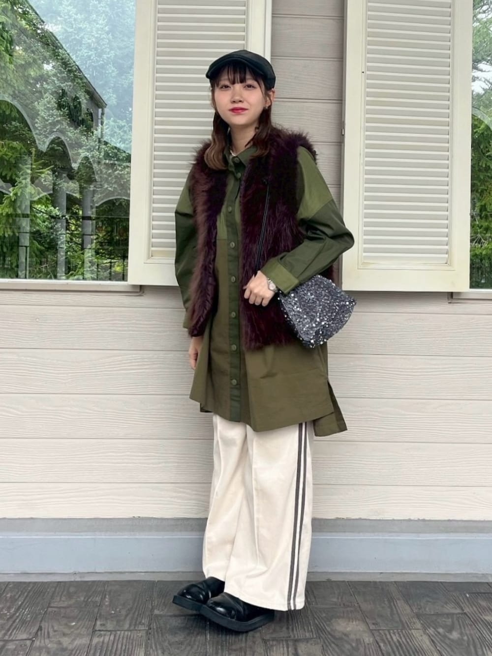 カーキ×ブラウンの大人っぽコーデをアイボリーのスウェットとブラック小物でしめたカジュアルコーデ🪽 instagram→@asknowasplus