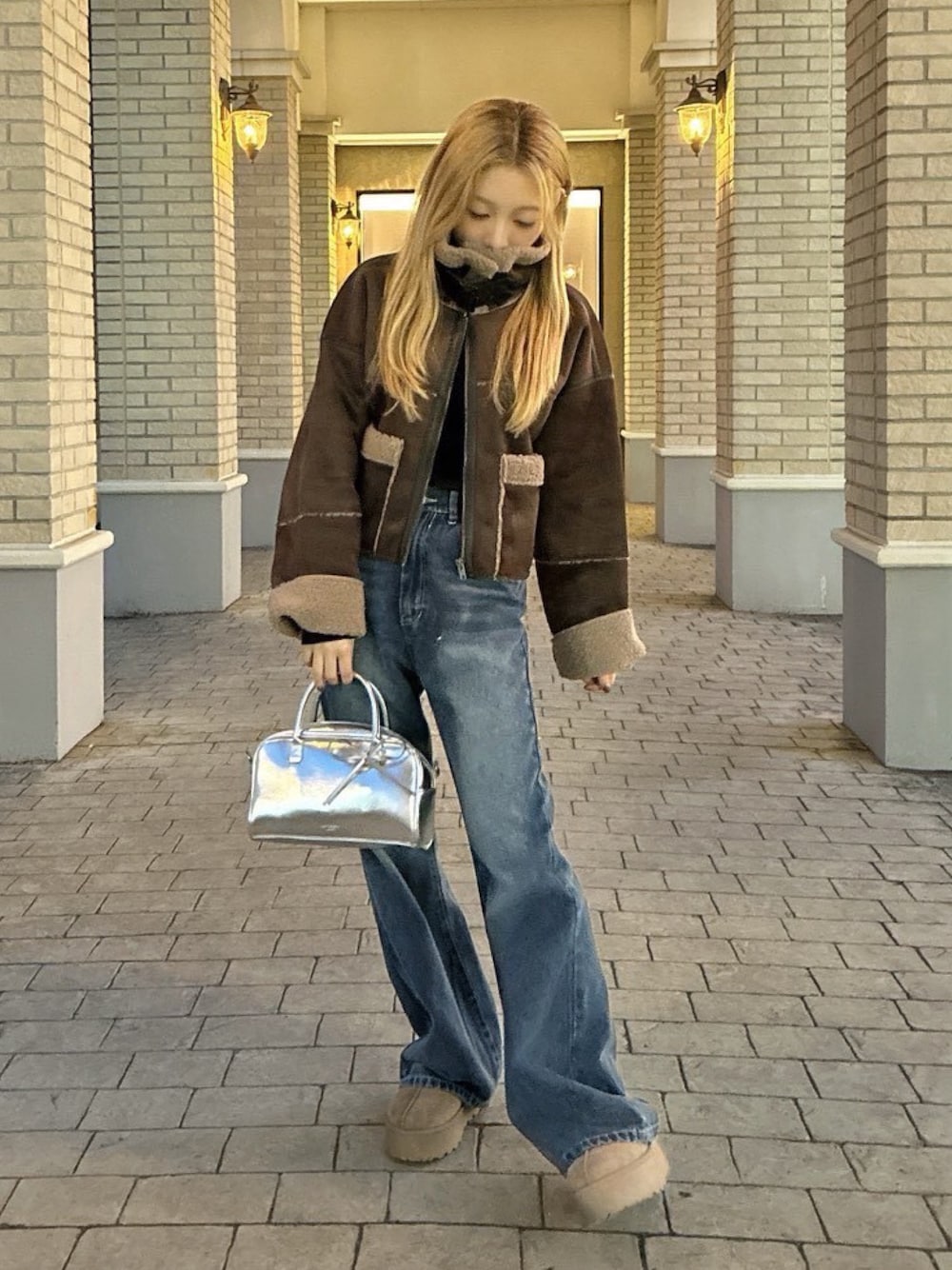 真冬も温かいボアのムートンジャケットを、華奢なデニムと合わせた今っぽ大人コーデ❄️ instagram→@asknowasplus