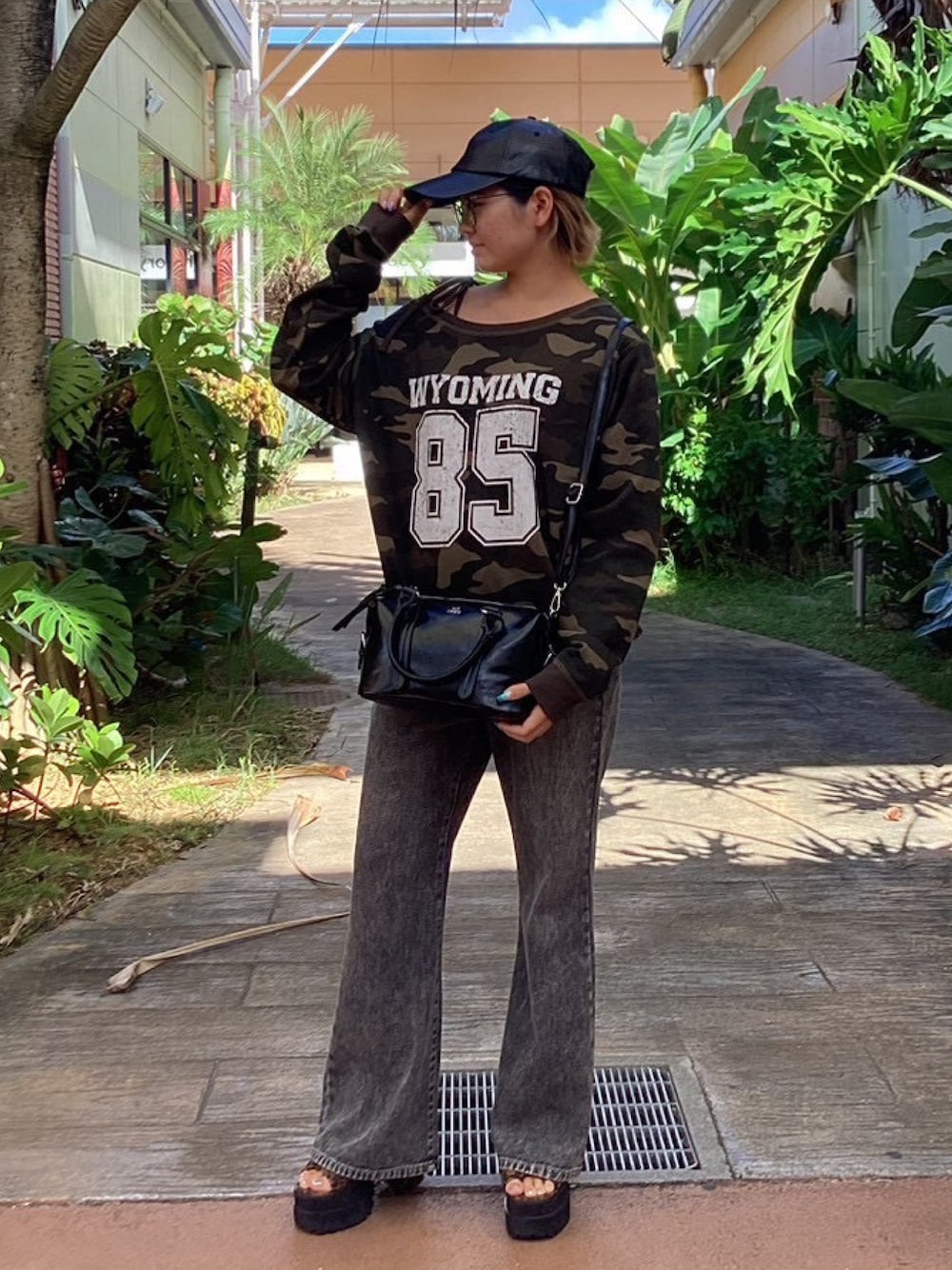 華奢見えするフレアデニムにワンショルスウェット、小物はブラックで締めた韓国コーデ🇰🇷 instagram→@asknowasplus