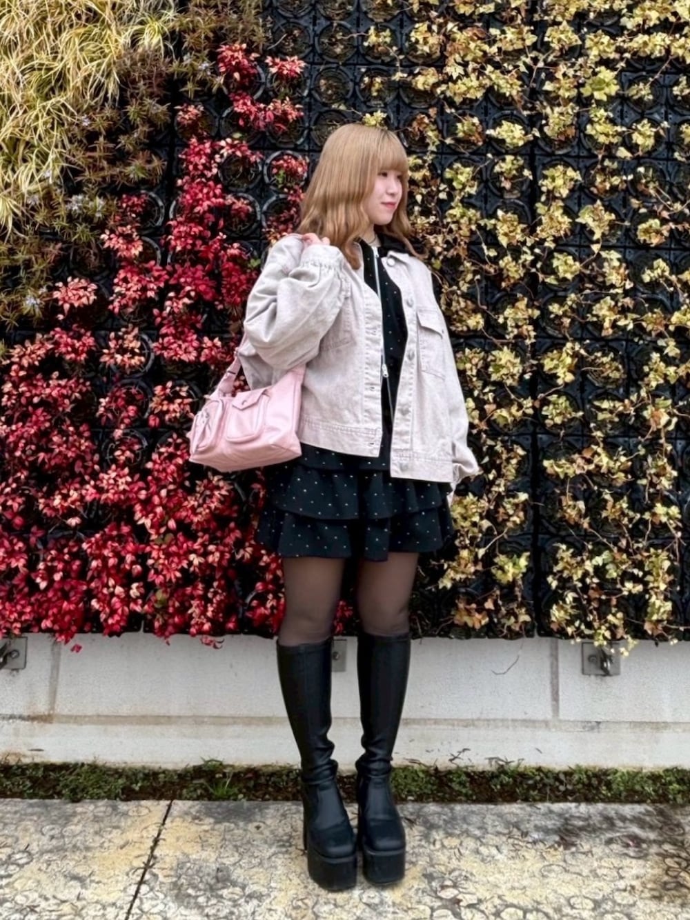 ドットのセットアップにピンクのデニムジャケットをオン!💞今っぽいガーリーコーデ♡ instagram→@asknowasplus