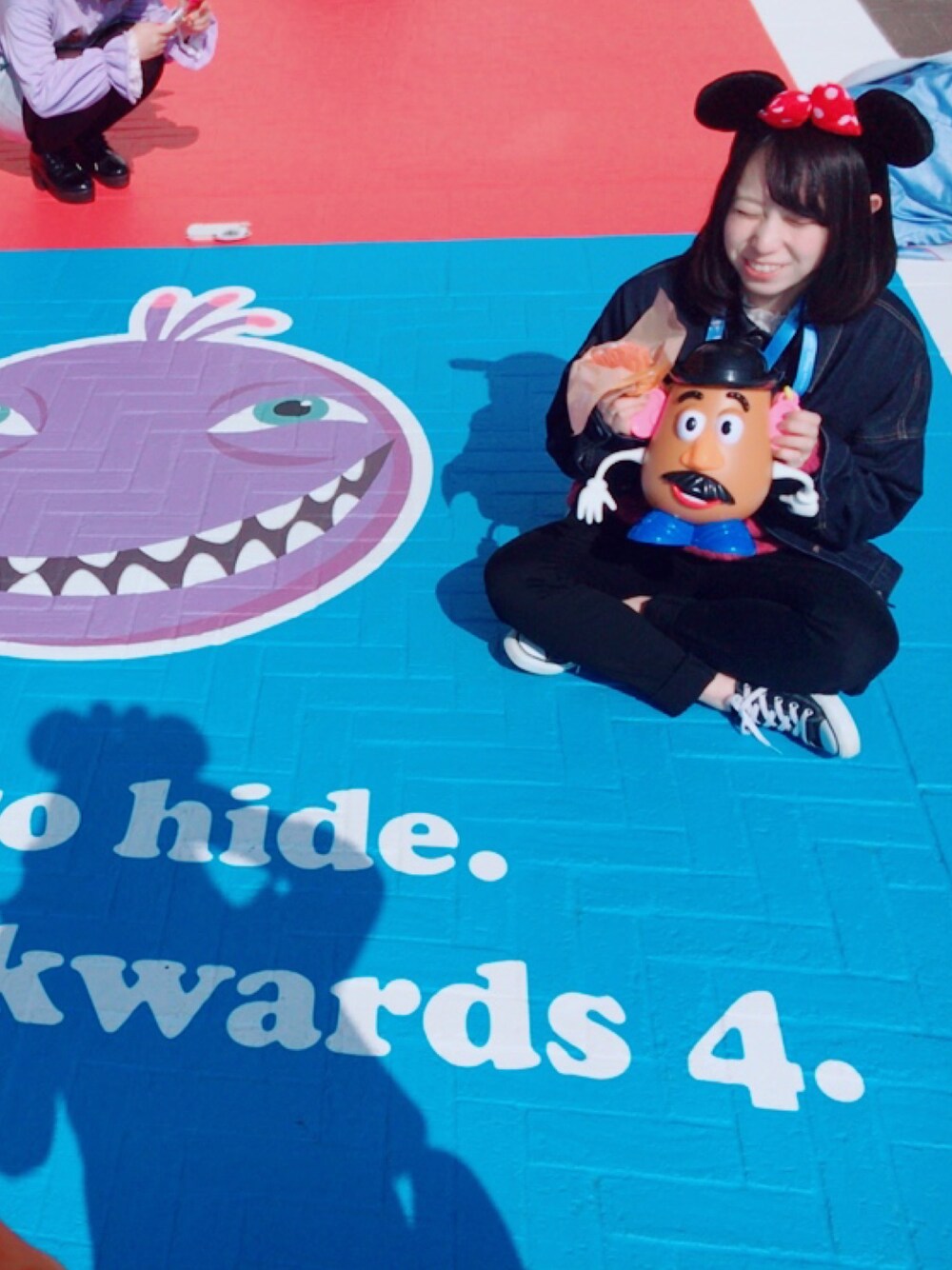 デニムジャケットを大きいサイズにすることでかわいさup ポイントとして明るめの色を1か所入れる