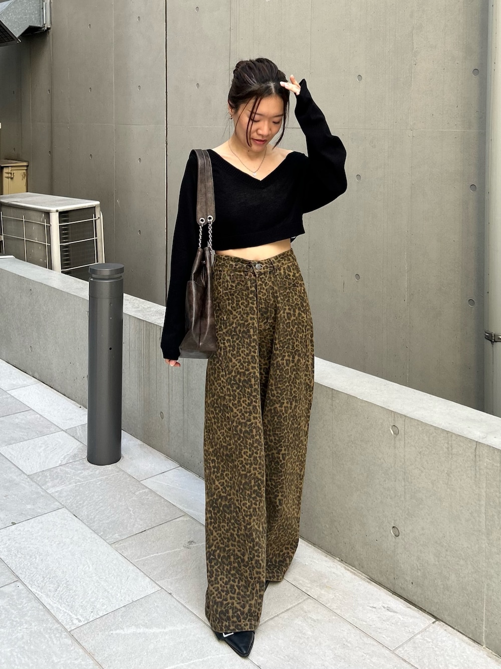 152cm / 骨格ナチュラル / イエベ秋 ⚪︎トップス シャツセットのトップスの ニットのみを着用しています。 サラッと薄めのニットなので 涼しい日が増えた今の時期にぴったり! 短丈なのでボリュームあるボトムと合わせるのがオススメです◎ ⚪︎ヒョウ柄デニム ワイドデニムですが、 サイドに切替えが入るのでスッキリ着られます! 152cmで5cm以上のヒール合わせが丁度良かったです。 低身長さんでも脚を長く見せるコツは、 “脚の甲までかかる丈感”なので、 小柄さんでも、ヒールを合わせたバランスで長さを選ぶのがオススメです◎