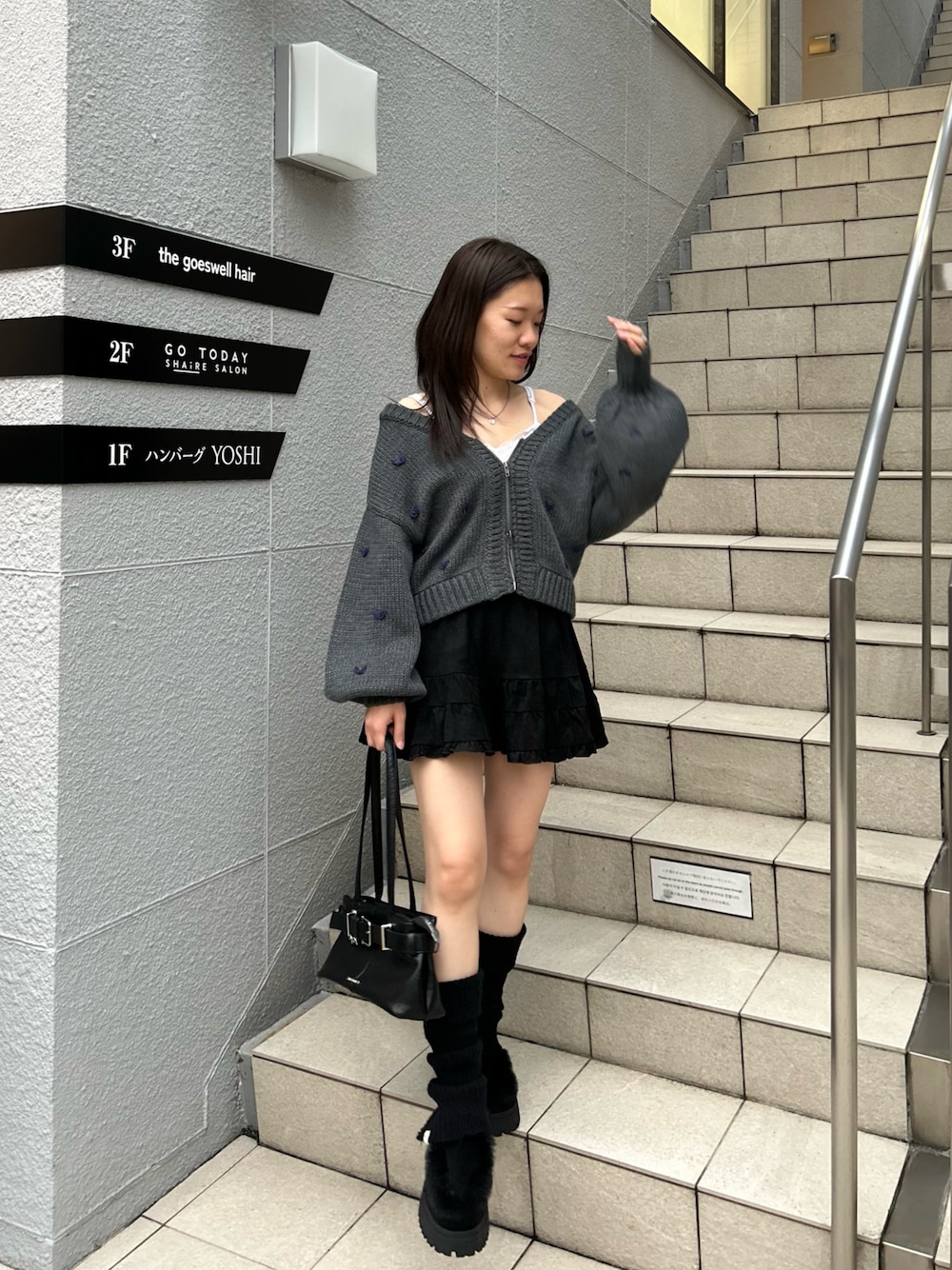 152cm / 骨格ナチュラル / イエベ秋 ⚪︎トップス ハートのデザインが可愛いニットは ジップを開けてオフショルにすると大人っぽく着られました♡ 可愛いアイテムは好きだけど、甘すぎるのは苦手な私は グレー×オフショルにしてみたら、丁度いいバランスに◎ 全体的にダークトーンでまとめると女っぽさもありつつ甘い要素を取り入れられます💭