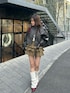 152cm / 骨格ナチュラル / イエベ秋 ⚪︎アウター 柔らかいレザーのような素材感が、春先にピッタリのアウターです。 152cmで腰上くらいのショート丈なので、小柄さんでもスッキリ着られるのが嬉しいポイント◎ ミニ丈はもちろん、ロングボトムでもバランスよく着られる1着です! ⚪︎スカート ティアードデザインが目を惹くスカパンです。 ツイル素材なので、ティアードでもボリュームが出過ぎないのが◎ ベルト付なので、ウエストもピッタリ着られるので、体型問わずに着やすいアイテムです。 (今回はベルトは着用していません。)