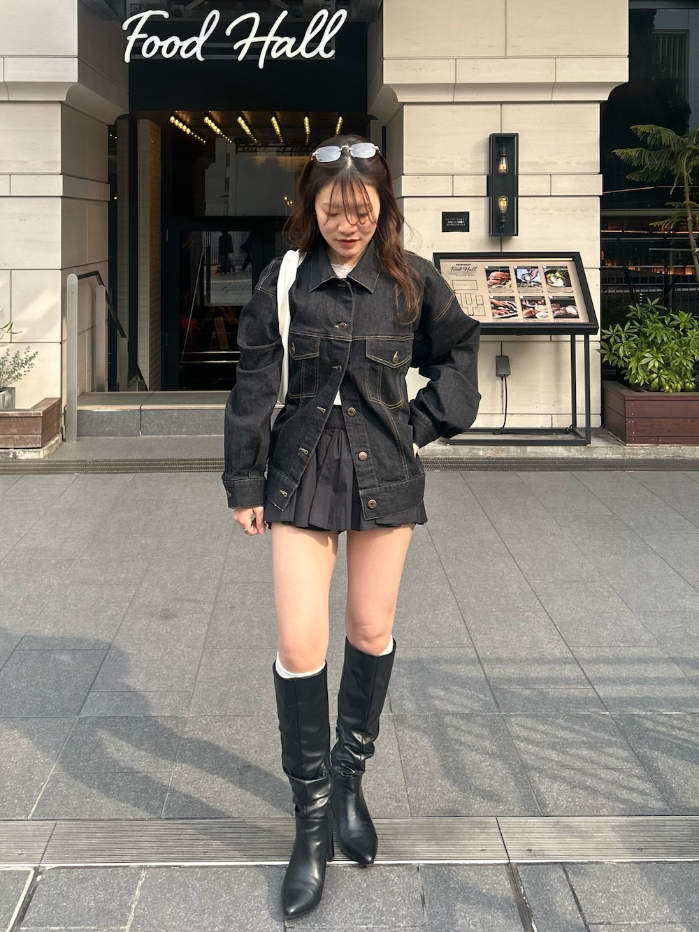 152cm / 骨格ナチュラル / イエベ秋 ⚪︎Gジャン 柔らかいデニム生地のGジャンです。 ウエストシェイプができるように、一般的なGジャンより生地が柔らかいので、着心地も◎ 後ろで絞ると自然な細身のシルエットでも着られるのがお気に入りです! ゆったり目で着たい時は、絞らなければゆるっと着られるので、お好みのシルエットで着用いただけます!