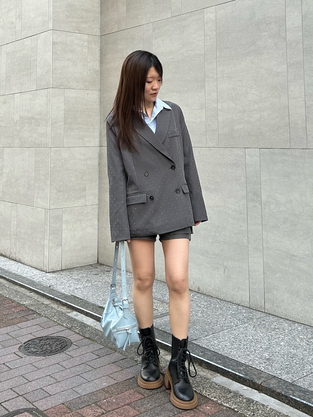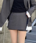 152cm / 骨格ナチュラル / イエベ秋 ⚪︎ジャケット キラッと光るラインストーンが目を惹くジャケットです。 生地は、サラッとしているので春の軽アウターとしても◎ ベルト付なので後ろで引っ張ると自然に、くびれラインも完成します◎ ベルトを使わなければ、ゆったりシルエットでも着られます。 袖のシャツと、裾のフリルは取り外しもできるのでシンプルジャケットとしても着られるのが嬉しいポイント! ⚪︎ボトム ジャケットとセットアップで着用可能なスカパンです。 ボックス形なので、ミニボトムでも大人っぽく着られます◎ オールシーズン着られる素材感なので、ベーシックなミニスカートを探してる方にもオススメです!