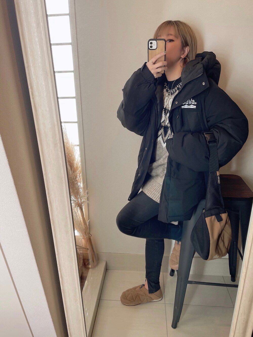 asmのダウンジャケット/コート「《JaVaジャバコラボ》 極暖、異素材 パネル フェイク ダウン ミドル丈 オーバーサイズ ジャケット」を使ったコーディネート