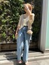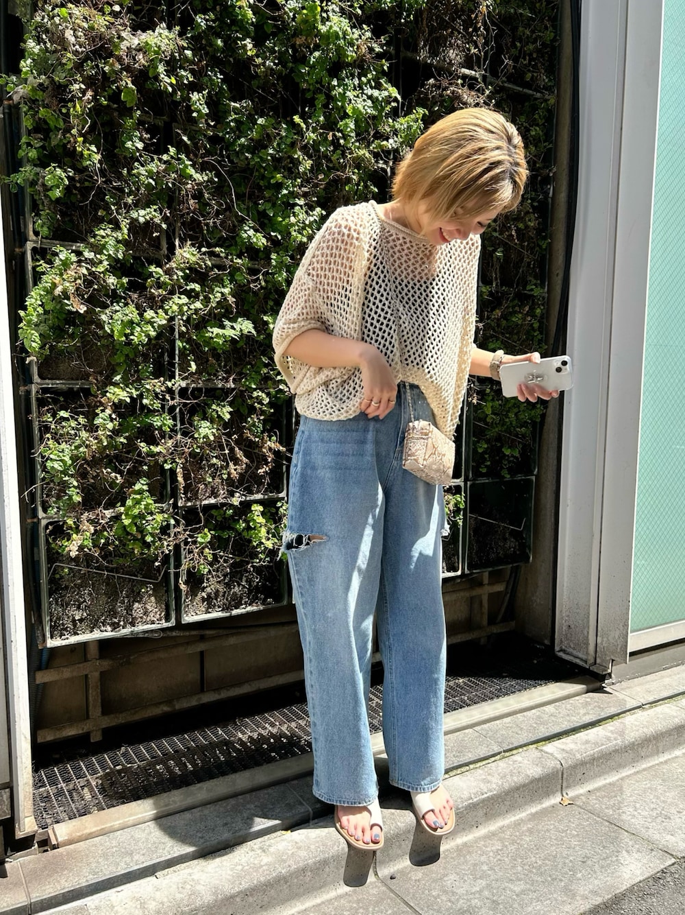 asmのニット/セーター「透かし編み クロップド丈 メッシュニット」を使ったコーディネート