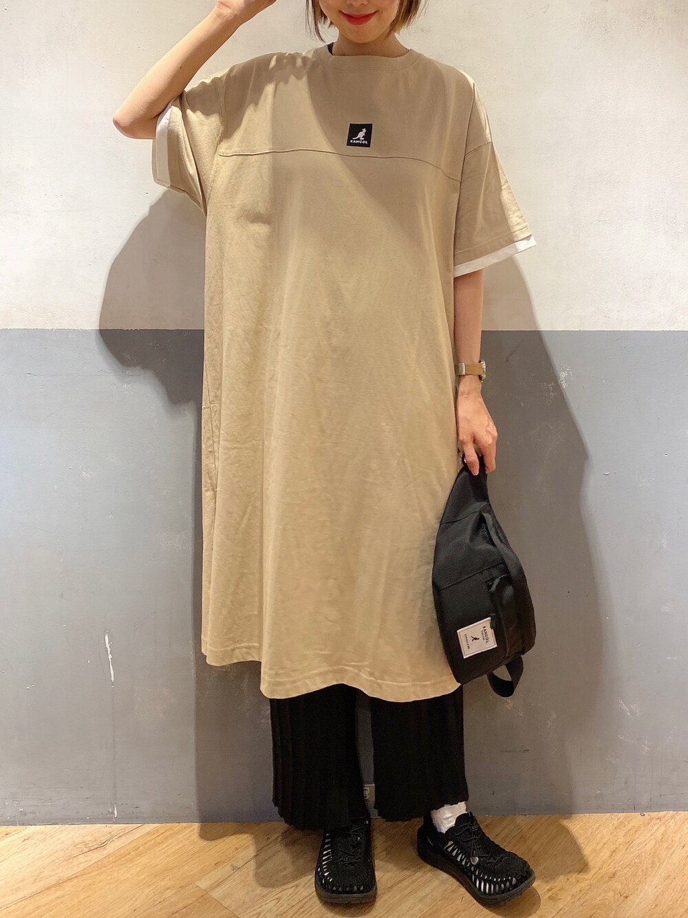 《コーディネートに迷わない🎶》 KANGOL フェイクレイヤードワンピース✔ 1枚でコーディネートの主役になる袖がフェイクレイヤード仕様になったカットワンピース☝︎☝︎☝︎ フロントにボックスプリント、バックにはビッグロゴプリントがありインパクト◎ ビックシルエットで両サイド深めのスリットなので着膨れしすぎずお使い頂けます🎶