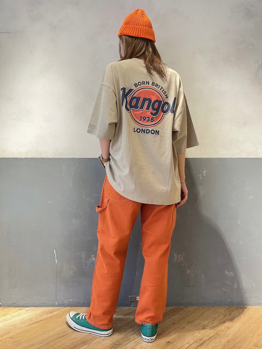 《ストリートstyle🤟》 ▶トップス KANGOL バックロゴT✔ バックにサークルデザインロゴを施したビッグサイズのTシャツです🦘 かなりゆるっと着れるのでストリートコーデにピッタリ𖤐 𖤐 ▶トップス Wrangler カラーペインター✔ Wranglerから限定アイテムが入荷しています☝︎☝︎ 今回私が着用しているのはオレンジのXS🍊 トレンドを意識したワイドシルエットなのでユニセックスで着用できます🤟 ワークパンツながら鮮やかなカラーリングでコーデの主役にピッタリです👍🏻´-