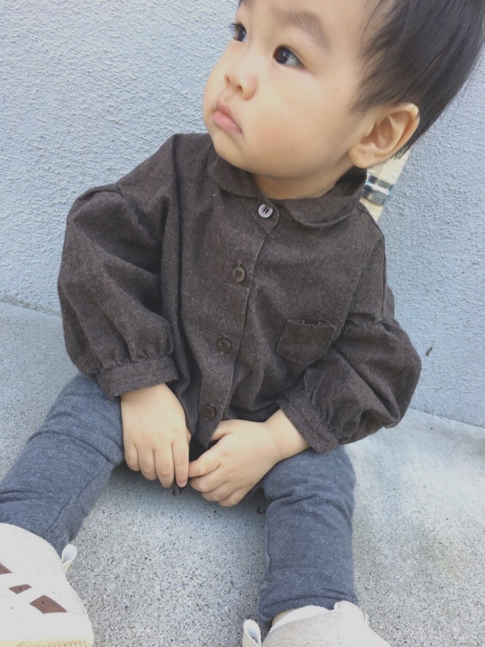 今日は来年度から保育園に 通うための面接へ行ってきました。 韓国子供服のシャツが ふんわりした綺麗なシルエットで お気に入りです。