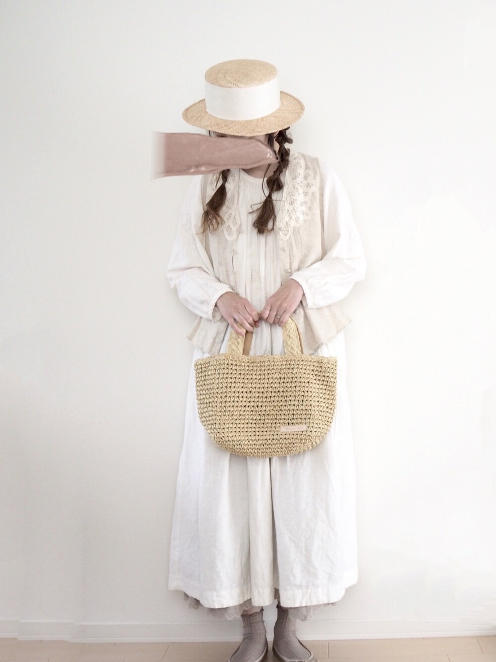 お気に入りのワンピースとバテンレースベストのコーデです𓎺 ꪳ