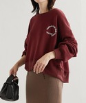 胸元のロゴがポイントのスウェット。 短丈なのでどんなボトムとも合わせやすくて使い勝手抜群! ボリューム感あるスカートとの合わせが女性らしく見えておすすめです。