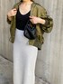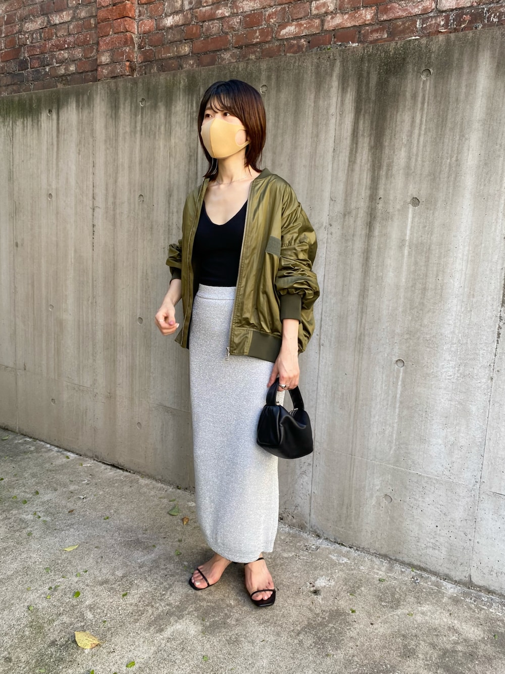 薄めの素材のMA-1なので秋の立ち上がりから活躍してくれそう! カジュアルになりがちなブルゾンは タイトスカートと合わせてバランスを取りました! オーバーシルエットだけど抜きめに着ると 程よく肌見せできてかわいい!