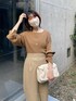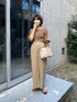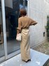 ベージュ系のワントーンコーデ。 エコレザーのスカートはタイトすぎず身体のラインを拾わずに履けます。 スリットが入っているので足捌きも楽!