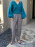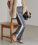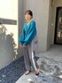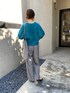 お袖のたぽっと感がかわいいカーディガン。 ふわふわの素材で軽くて暖かいのも魅力。 ビビットなカラーには淡めの色を合わせるのが好きです。 グレーのラインパンツは美脚効果も高いので万能に使えておきにいり!