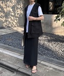 トレンドのフィッシャーマンベスト。 カジュアルに見えないようにシアートップスと華奢めなサンダルと合わせました。 デニムはストレッチが効いていて着心地◎