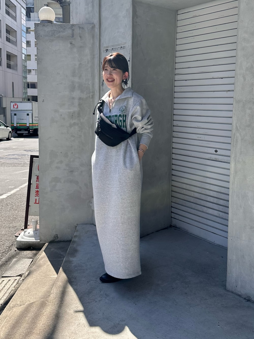 スウェットのワンピってかわいい! 裏起毛なので真冬もめっちゃ暖かいです! ジップを上げてハイネックにして着てもかわいいよね。