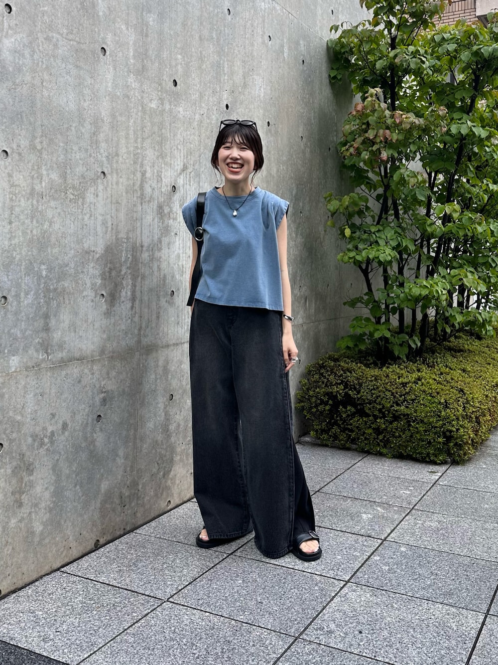 古着っぽい風合いのTシャツは肩周りにタックが入ってるから腕をスッキリ見せてくれる。 ワイドシルエットのデニムとの相性がよかった!