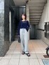 デコルテがきれいに見えるベロアのトップスは少し透け感がある薄手ものなので気温が高い時期からも着られます。 あえてスウェットパンツと合わせてカジュアルに外しました。パンツは0サイズを着用してます。