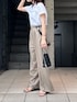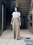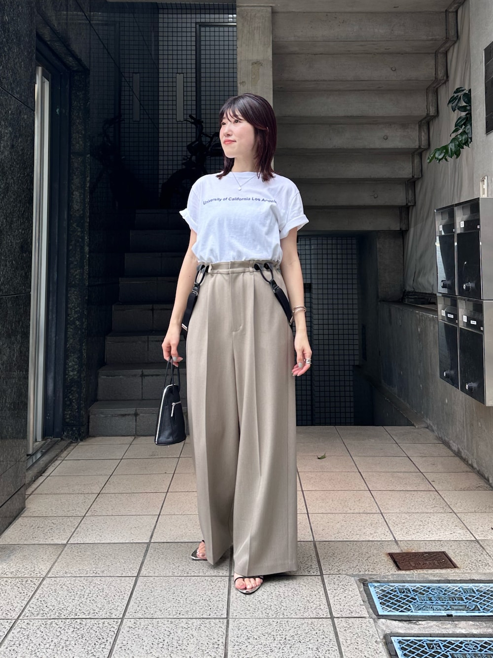 ぶかっとワイドで履けるシルエットがお気に入りのサスペンダーパンツ。ロゴTシャツと合わせて少しカジュアルに着るのが気分。