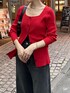 スクエアネックでデコルテを綺麗に見せてくれるトップス。デニムと合わせてカジュアルに着たい!