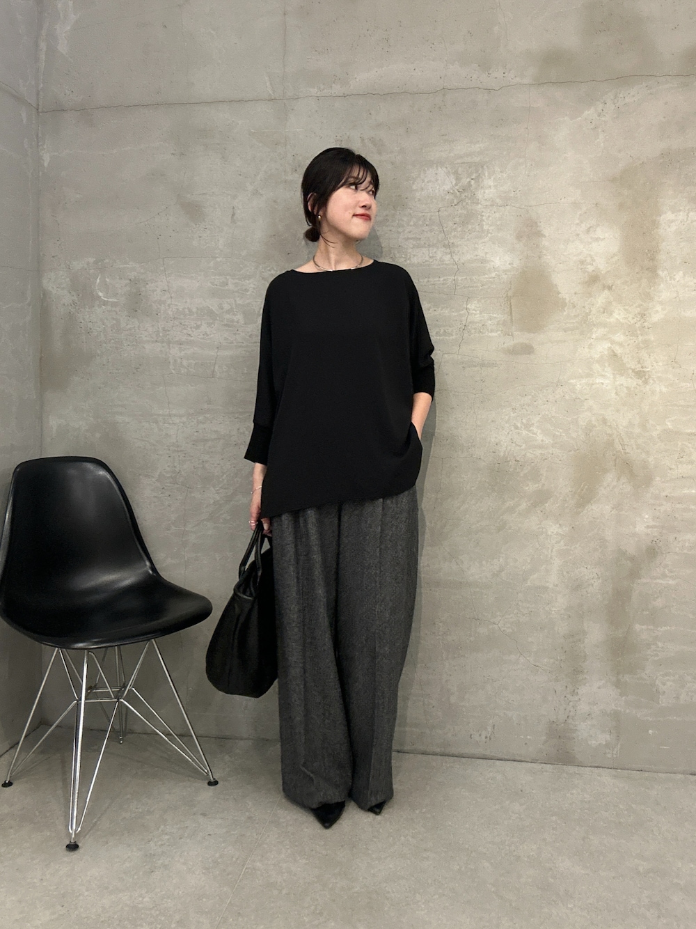 人気のジャージ袖リブブラウス。足がキレイに長く見えるタックヨークパンツと合わせてオフィスカジュアルコーデをイメージしました!パンツは1サイズを履いてます。