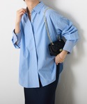 ハーフジップのデニムワンピに差し色の青シャツをレイヤードしたスタイル。 今の時期なら1枚で着てちょうどいいけど寒くなったらシャツやタートルのニットをレイヤードするのがおすすめ◎